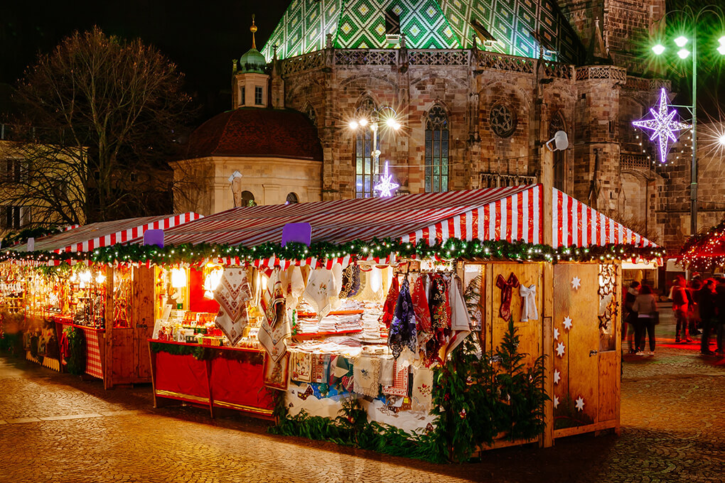 Puntare sui colori e sulle luci appese al gazebo, che creano un’atmosfera quasi di magia, oltre che essere decorative, specie se si tratta di un mercatino natalizio.